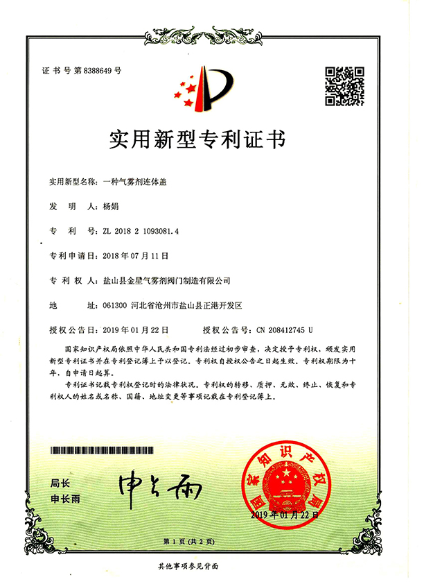 董事长杨金星先生参与起草气雾阀国家标准(GB/T 17447-2012)