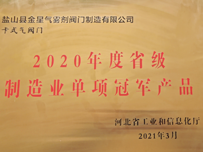 金星生产的卡式气阀门荣获“2020年度省级制造业单项冠军产品”